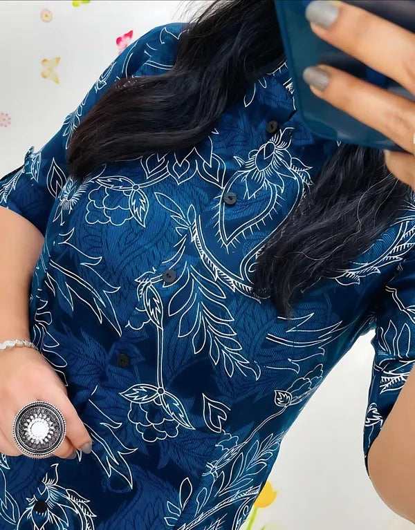 Refresh your everyday ethnic wardrobe with this Navy Blue Floral Printed Kurti Set, designed for comfort, elegance, and effortless styling.